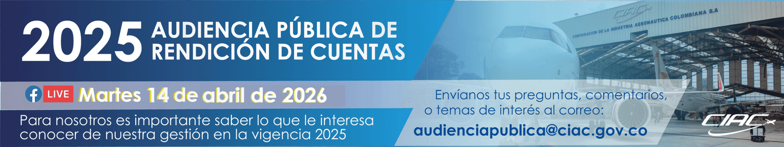 La Corporación de la Industria Aeronáutica Colombiana CIAC S.A., con 69 años de experiencia, se ha caracterizado por ofrecer servicios de mantenimiento programado y no programado de aeronaves y componentes, fabricación de sistemas de protección balística, así como diseño y desarrollo de aeronaves tripuladas y no tripuladas (UAV), tanto al mercado comercial como de Defensa, contando para ello con un talento humano calificado y comprometido, tecnología e infraestructura de punta y los más altos estándares de calidad y seguridad aérea, que garanticen la satisfacción del cliente, impulsando con excelencia el desarrollo de la Industria Aeronáutica en el país.